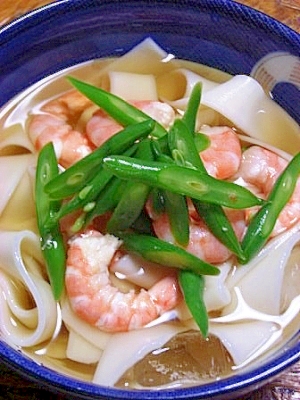 冷たい インゲンとエビの冷きしめん レシピ 作り方 By 一点集中力 楽天レシピ