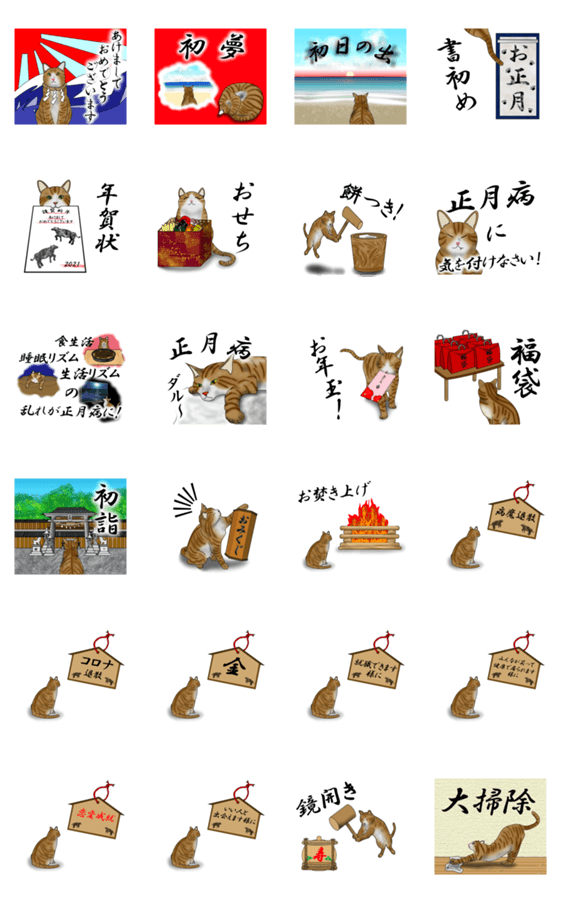 激しめ猫 お正月テイスト Lineスタンプ アメイジング大井